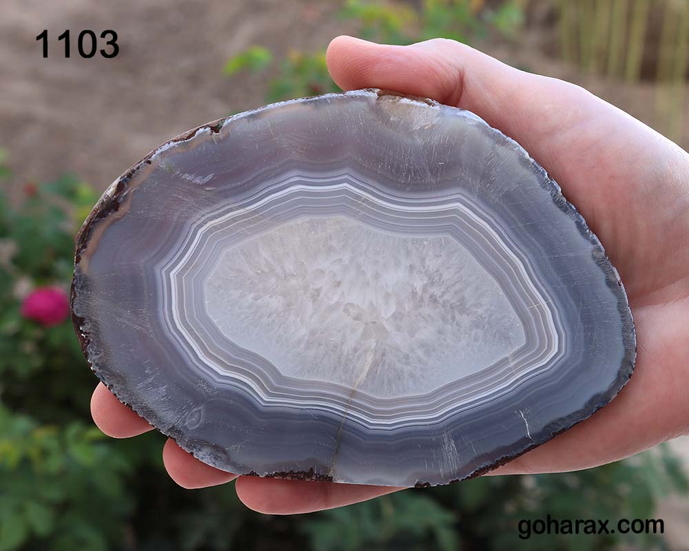 این قطعه سنگ داستان ساخت زیبایی دارد، چندین لایه عقیق اطراف کریستال های کوارتز تشکیل شده اند. درون قلب عقیق کریستال های زیبای کوارتز رشد کرده اند.